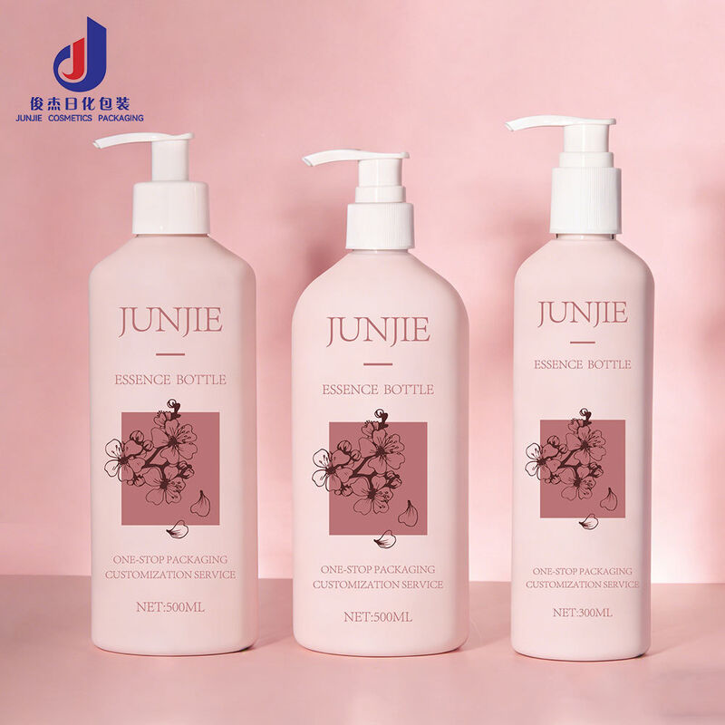 Bottiglie di plastica da 500 ml e 300 ml progettate per shampoo, lozioni e vari prodotti cosmetici.